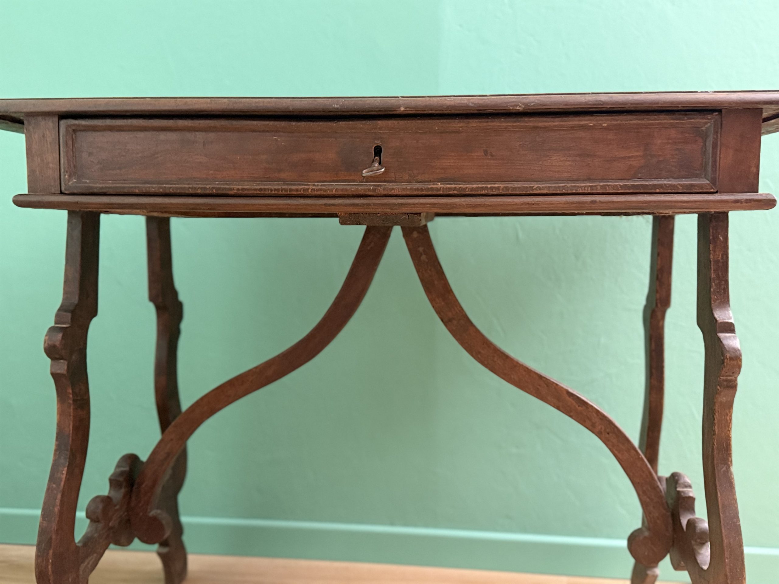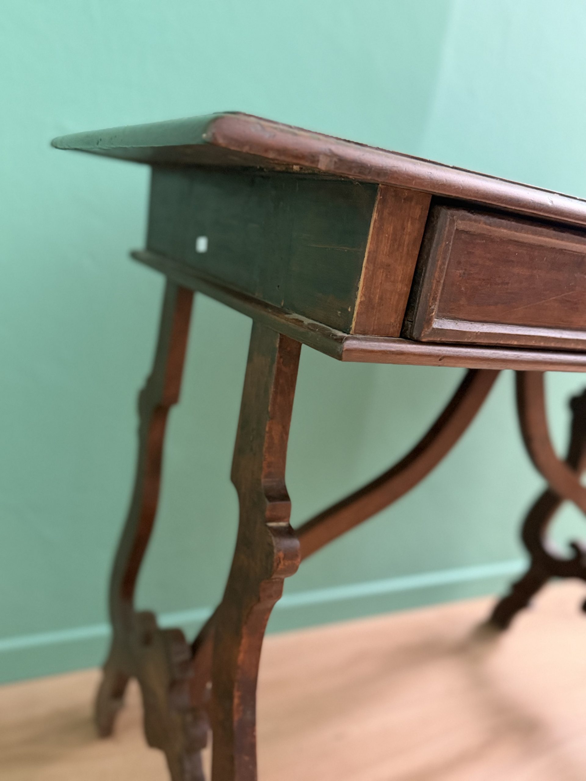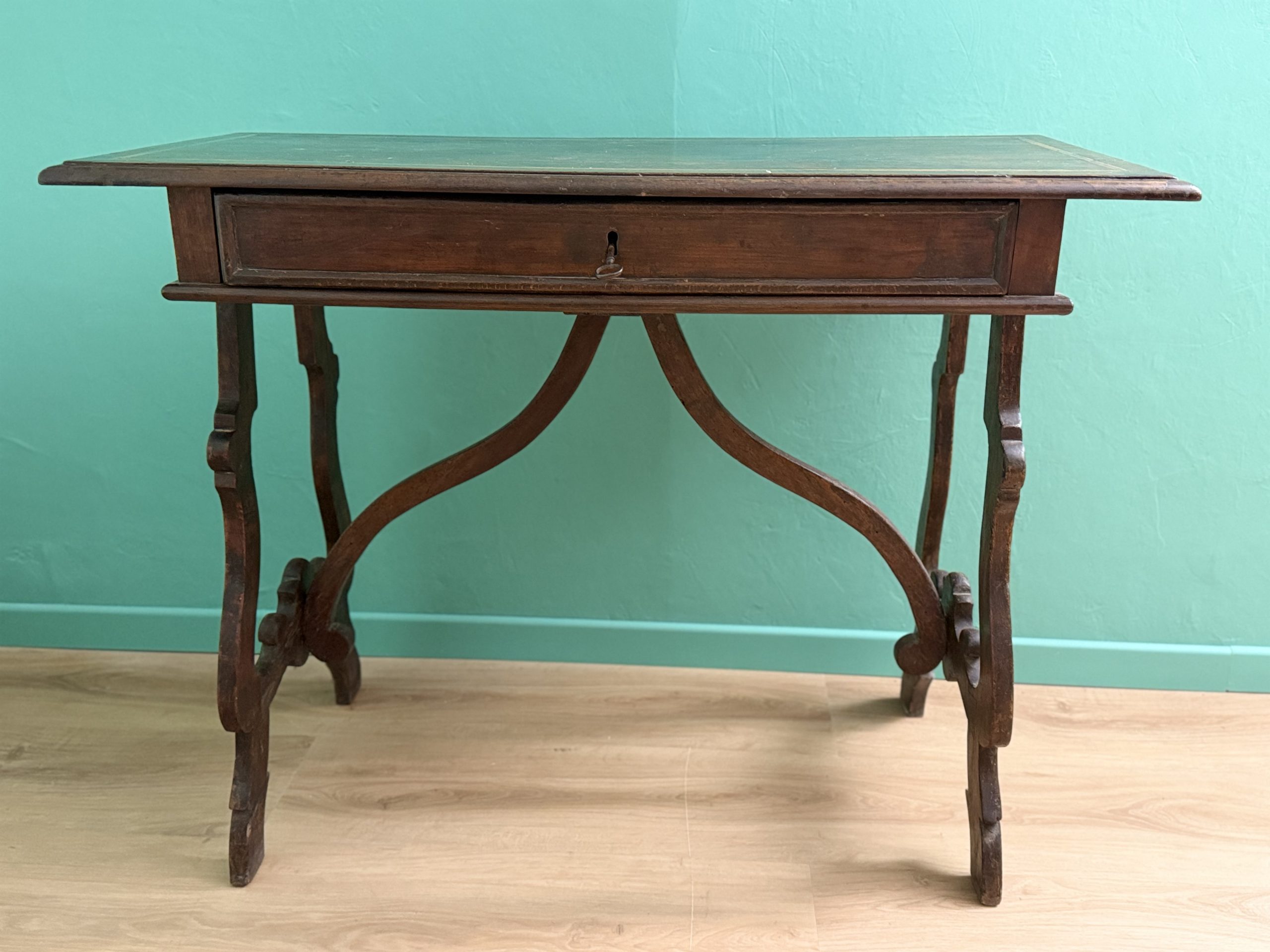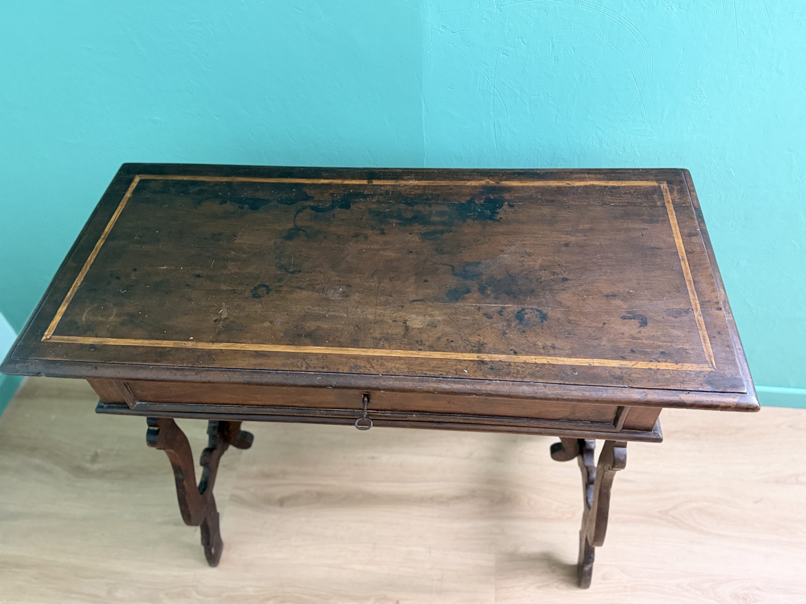 Antico Scrittoio Fratino in Noce con Piedi a Lira del XVIII Secolo con Piano Filettato area marchigiana.