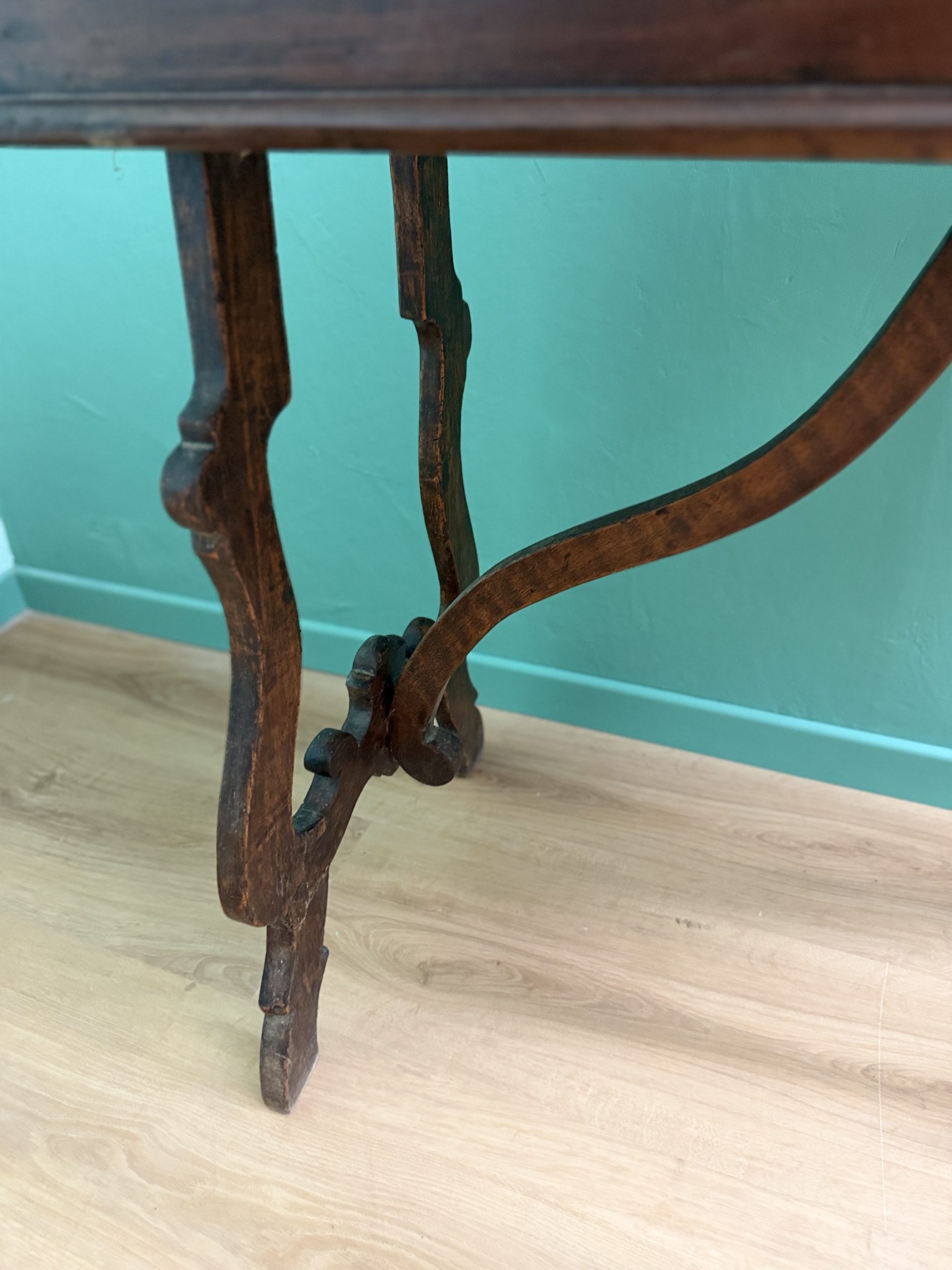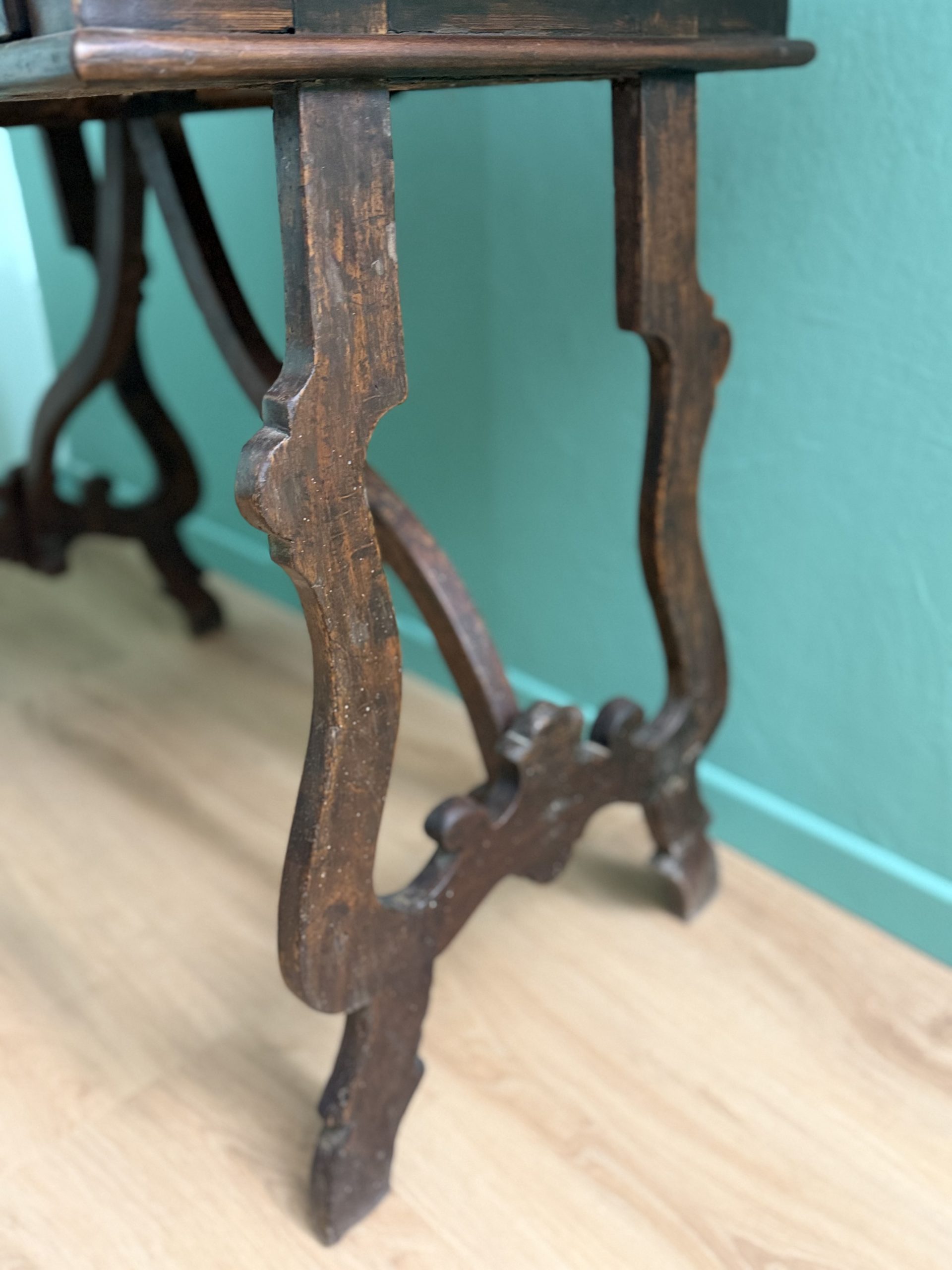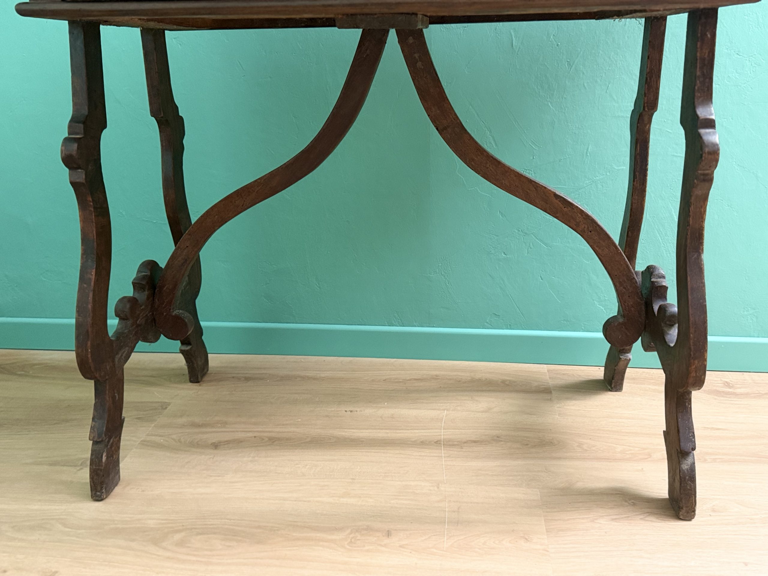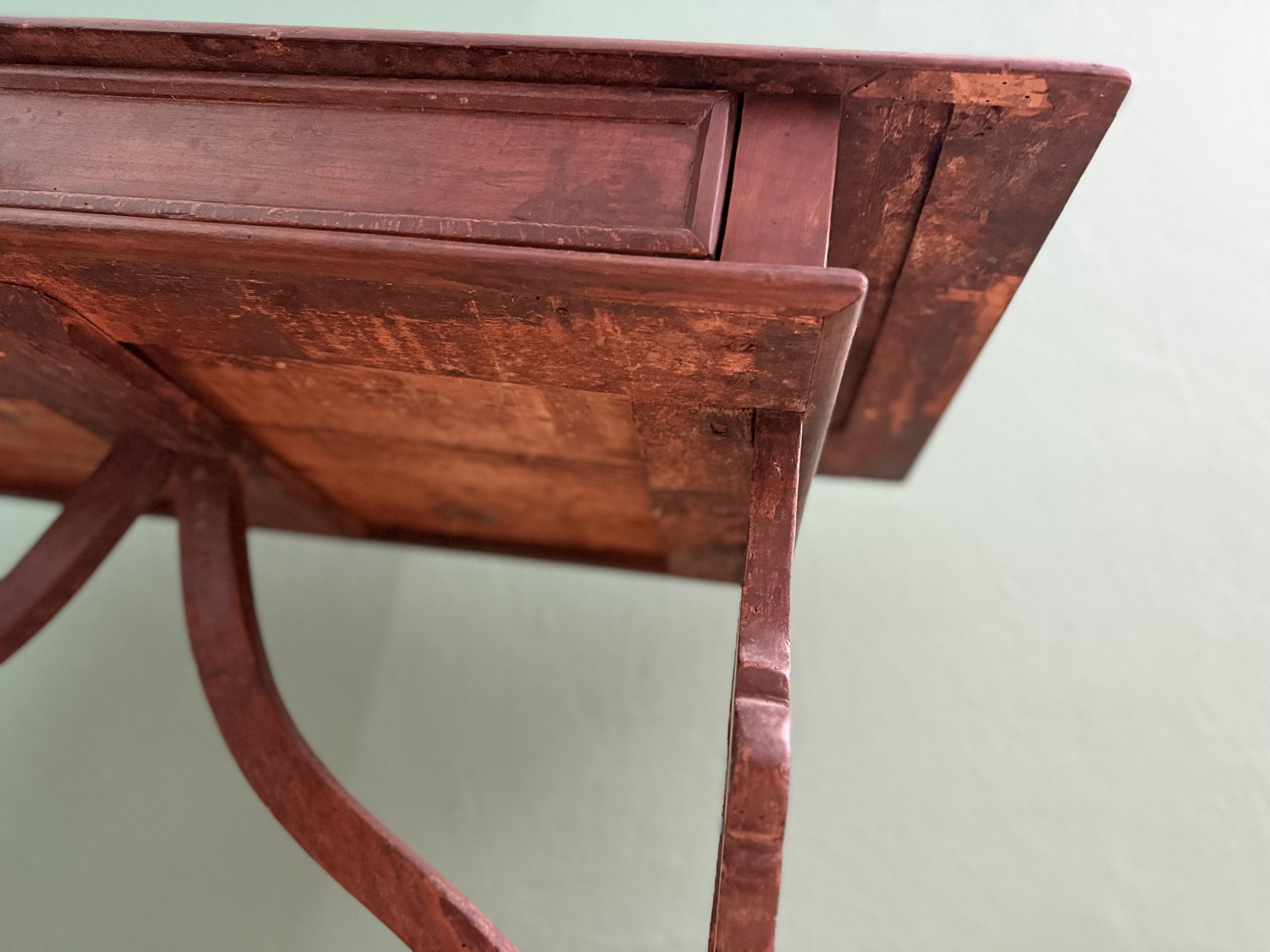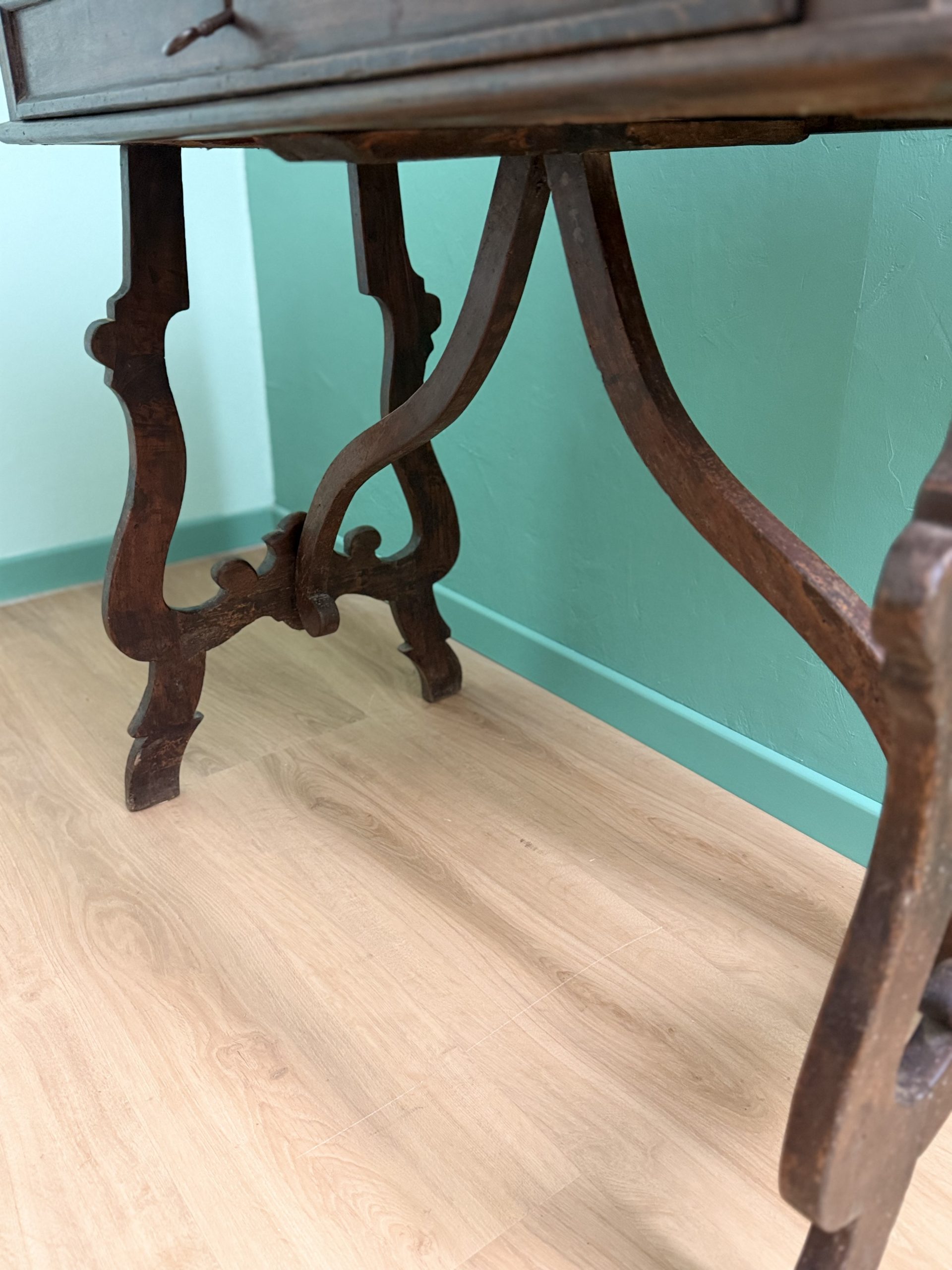 Antico Scrittoio Fratino in Noce con Piedi a Lira del XVIII Secolo con Piano Filettato area marchigiana.