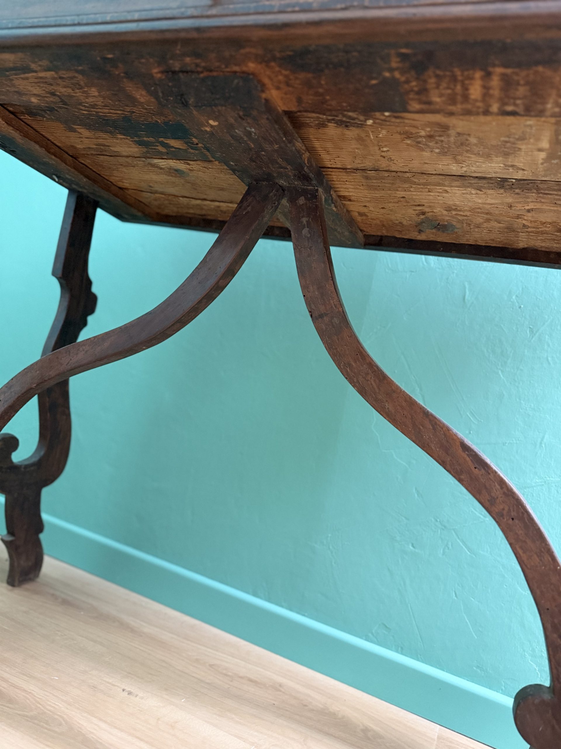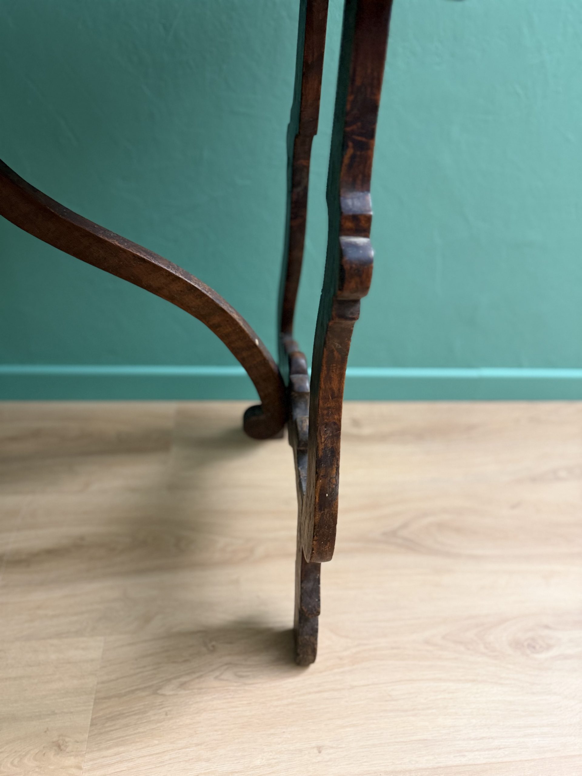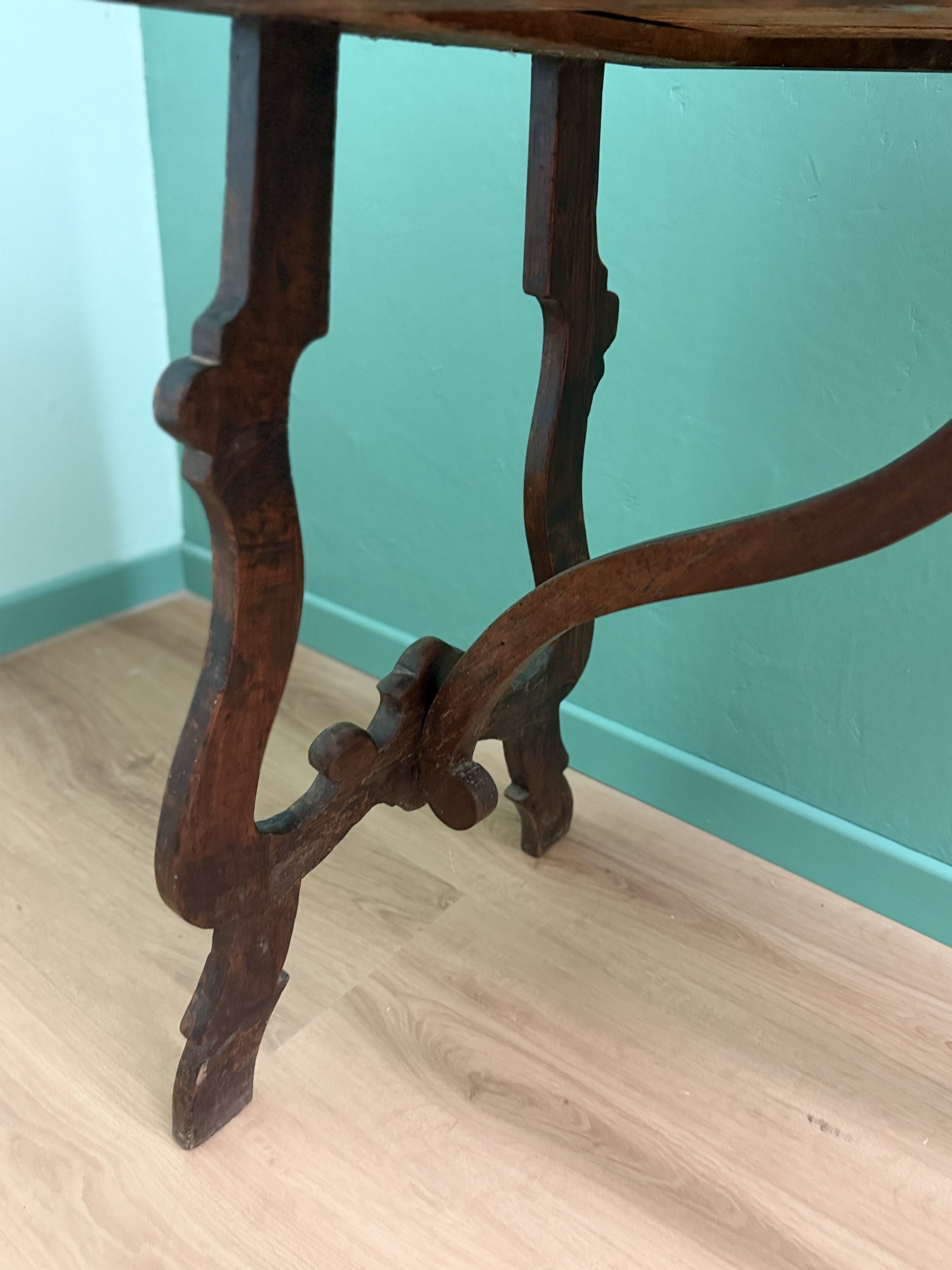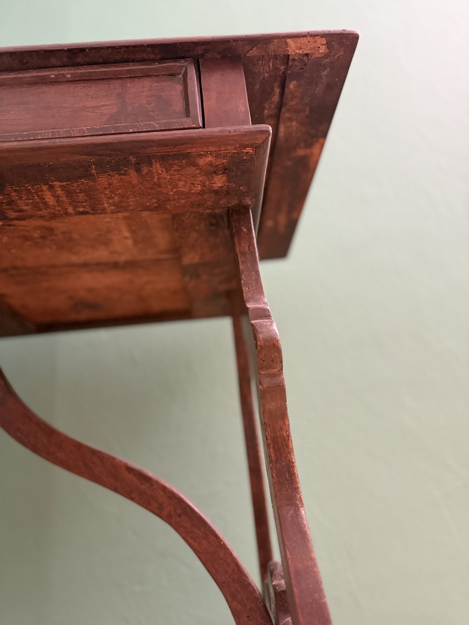 Antico Scrittoio Fratino in Noce con Piedi a Lira del XVIII Secolo con Piano Filettato area marchigiana.