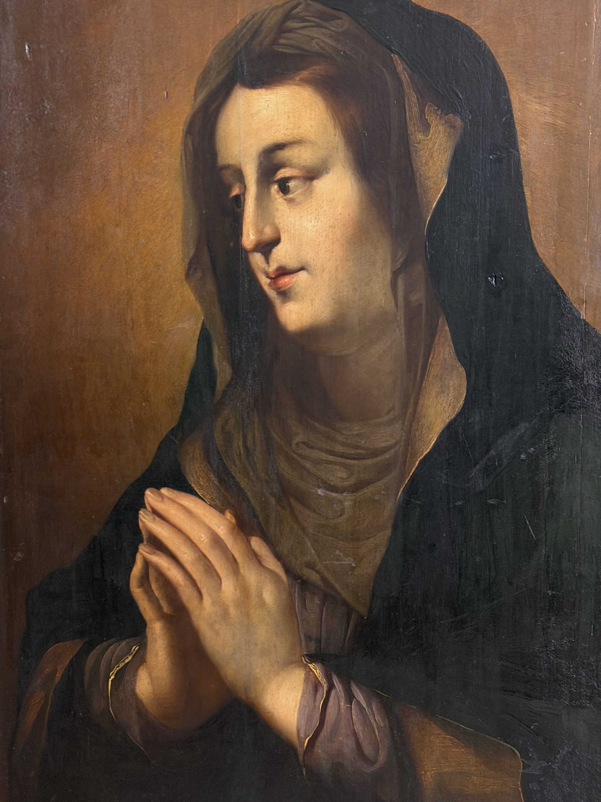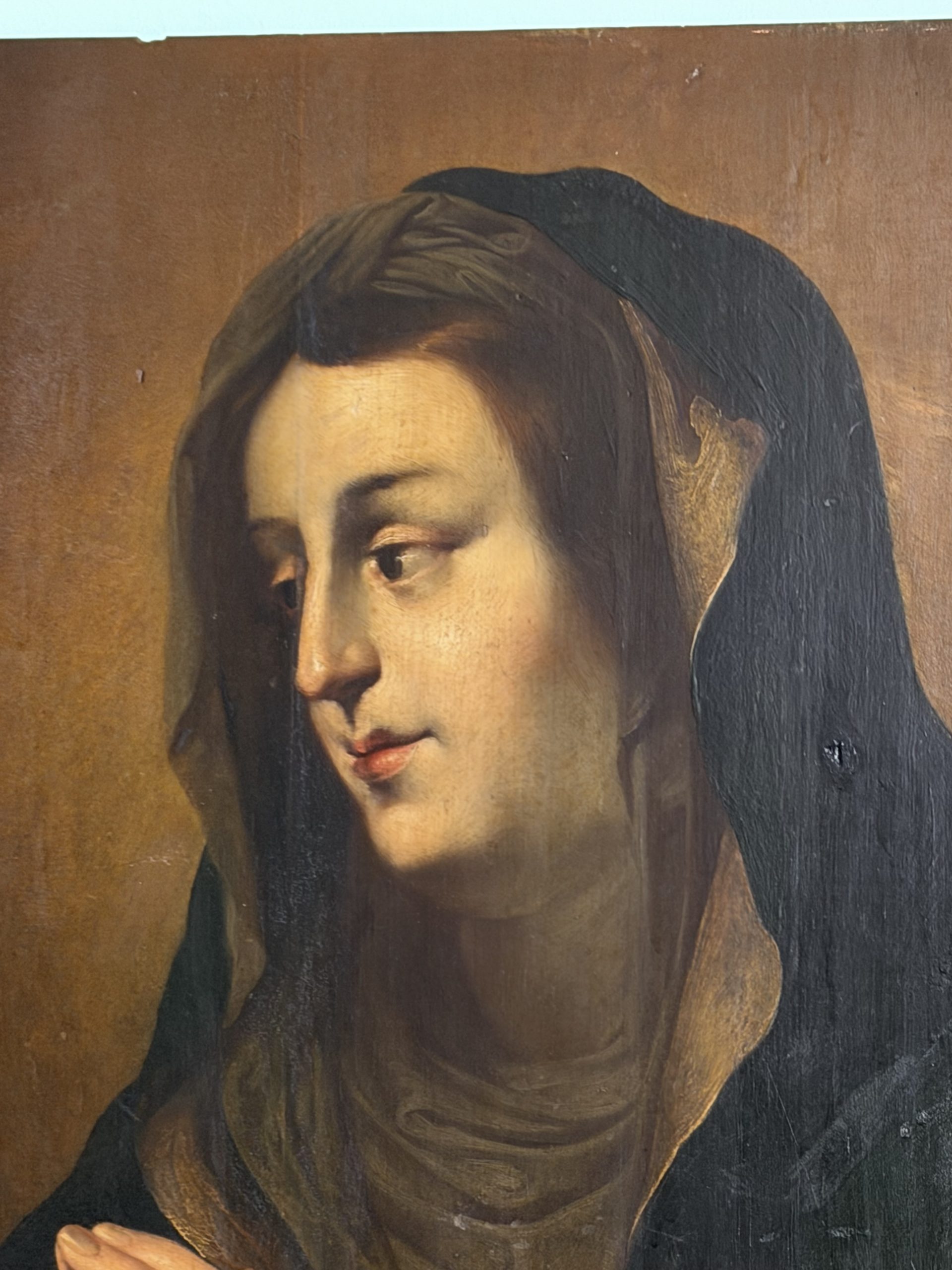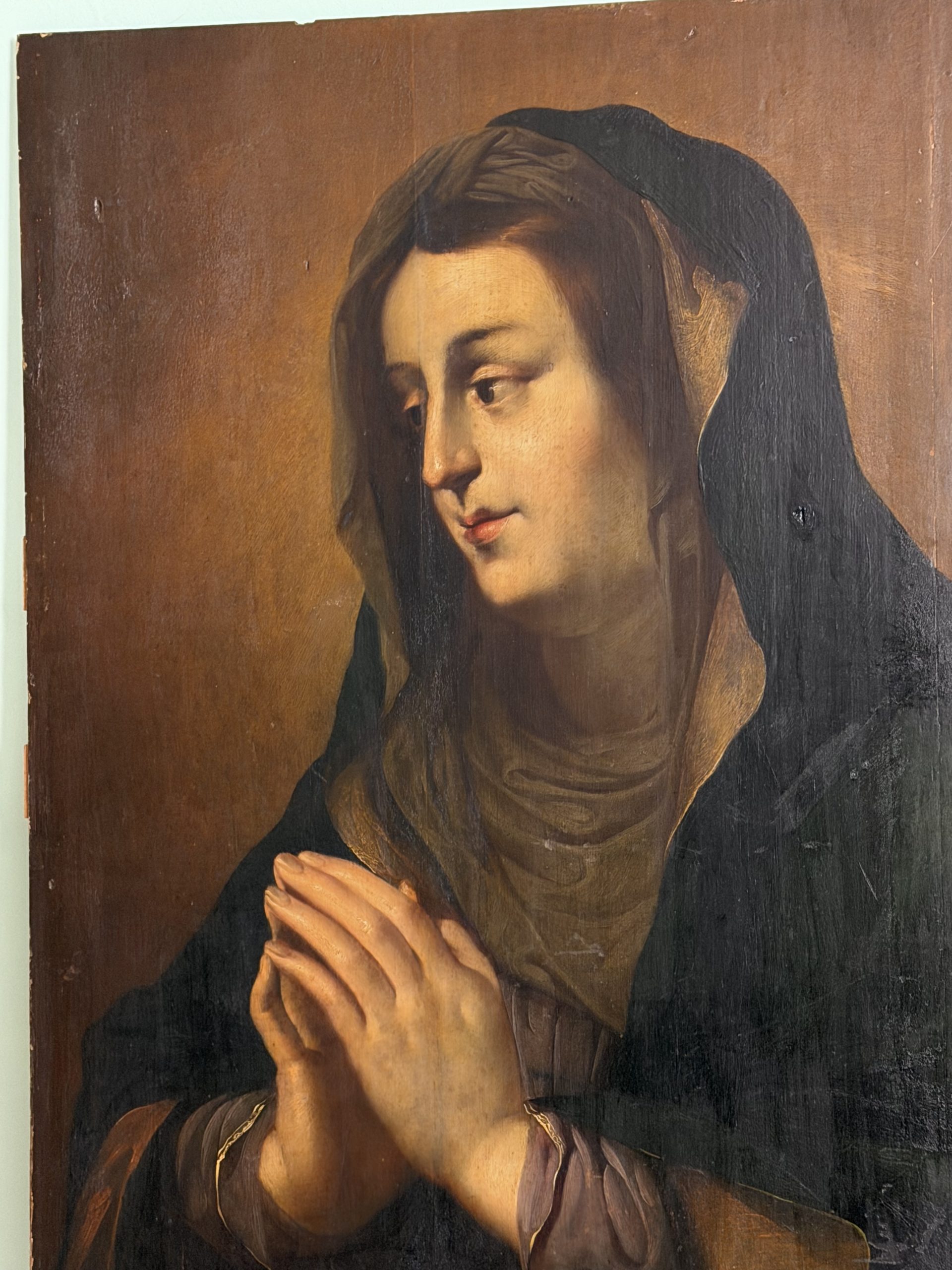 Dipinto Olio su Tavola raffigurante madonna in preghiera del XVII secolo misure 83×67 cm.