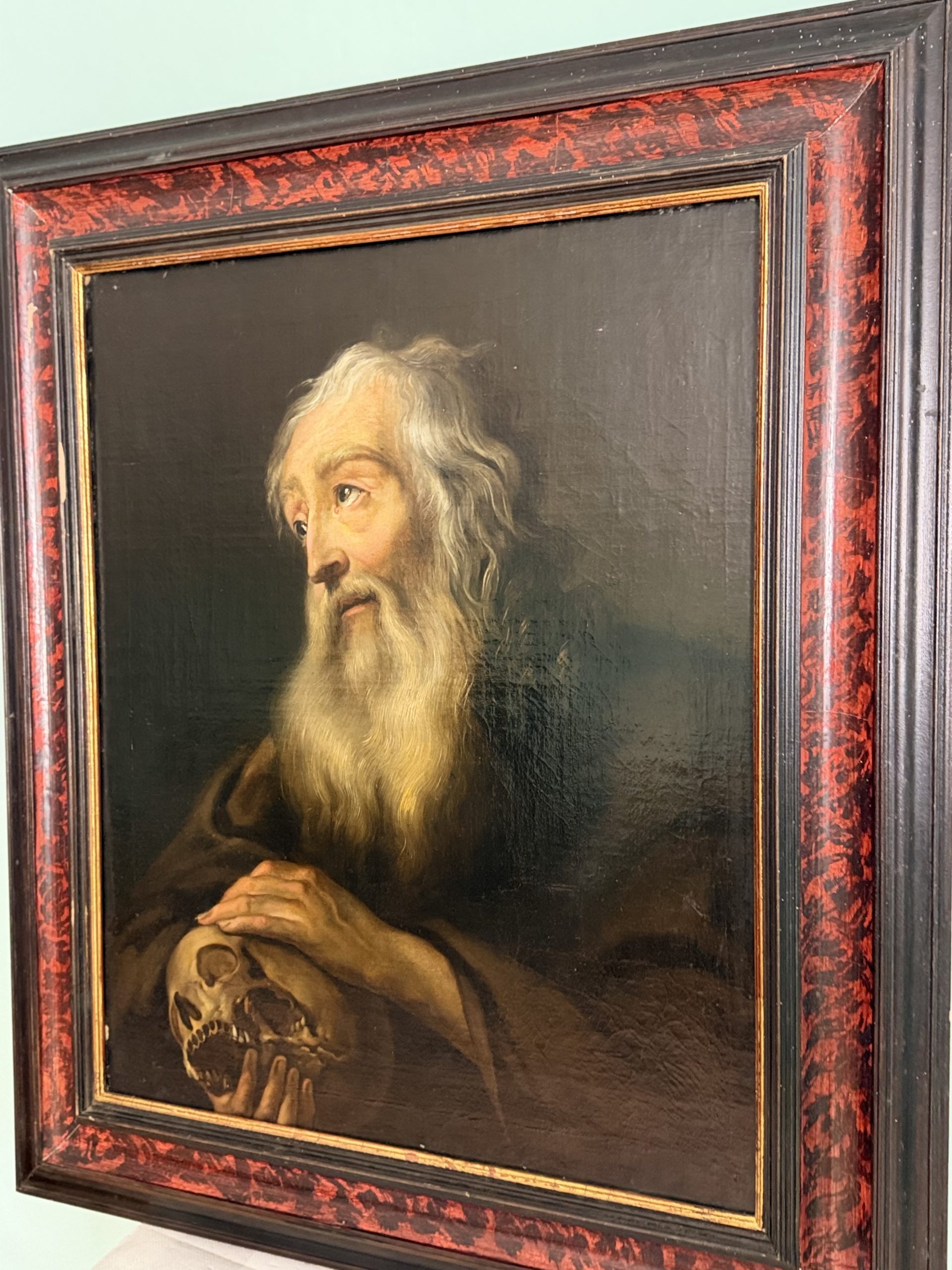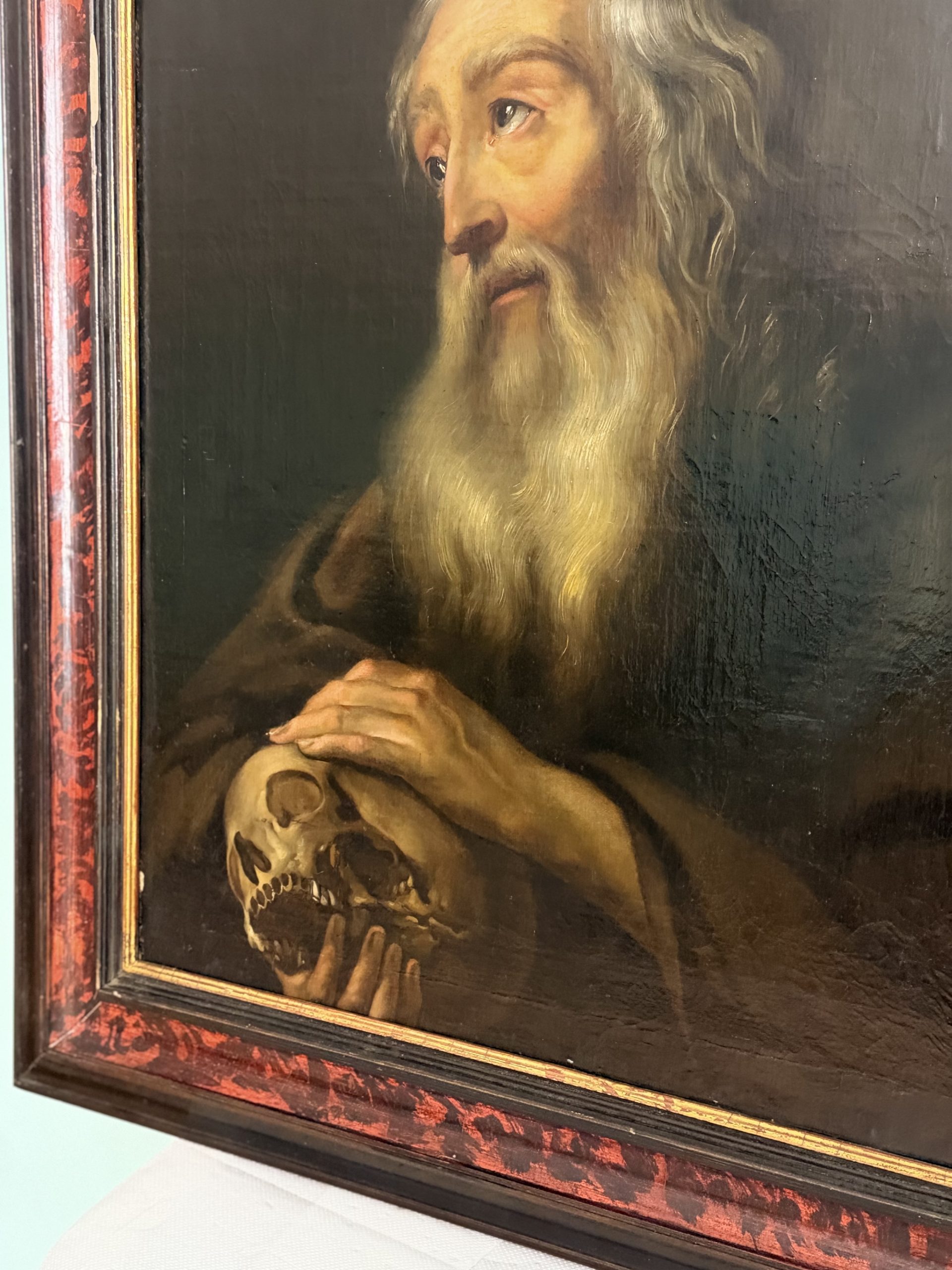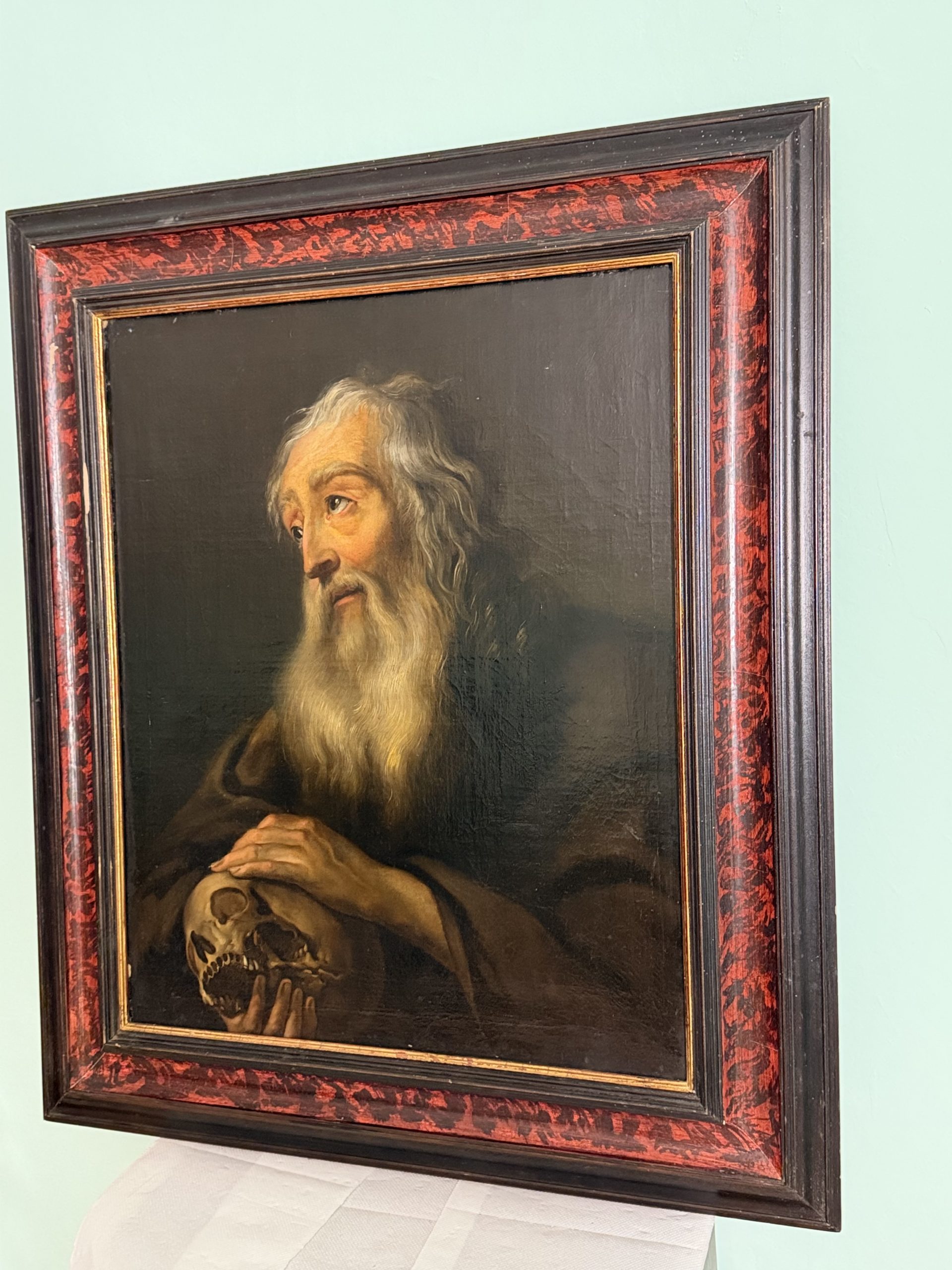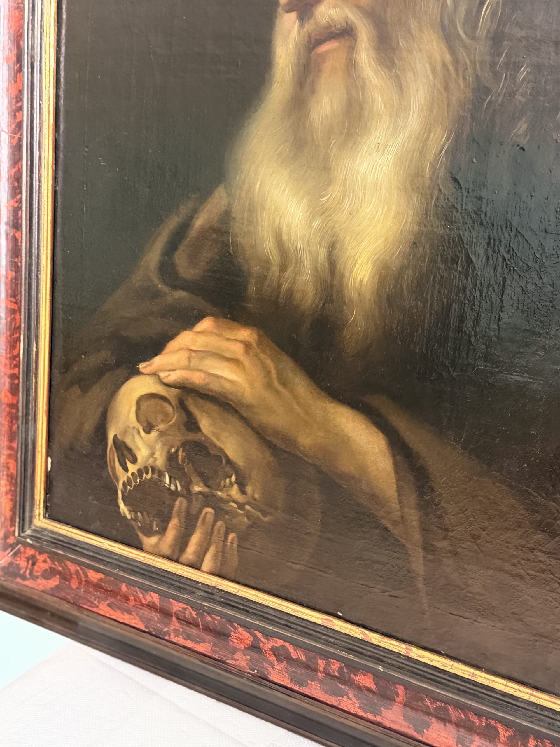 Dipinto Olio Su Tela Raffigurante Monasco in Preghiera del XVIII secolo.